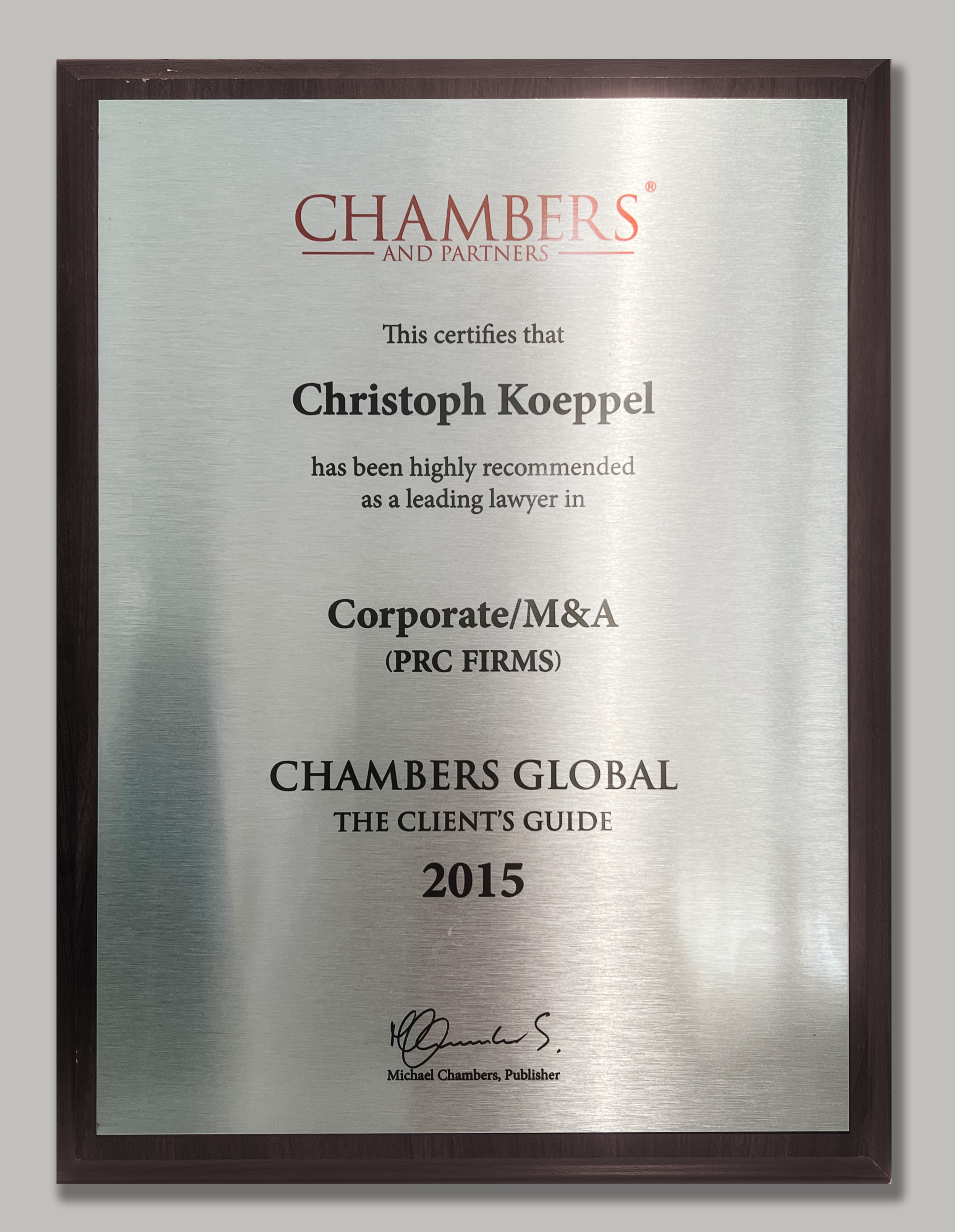 Christoph Köppel ist Verfasser der «Rechtliche Rahmenbedingungen in China» im Handbuch «Internationales Handels- und Wirtschaftsrecht, Rechtliche Herausforderungen im Auslandgeschäft», publiziert von Münch Peter, Passadelis Nicolas, Lehne Jens, Helbling Lichtenhahn Verlag, 2015.